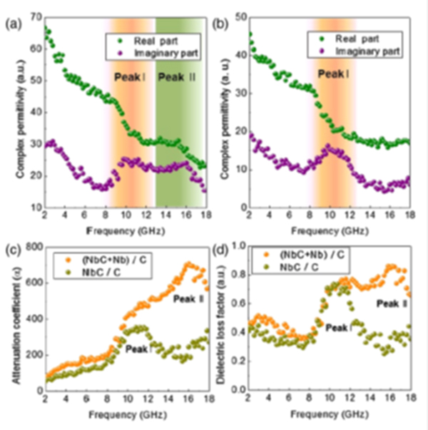 图2 NbC纳米团簇和高密度单原子Nb镶嵌在石墨中的介电损耗特征