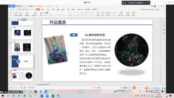 11月8日晚,“献礼十月,金属工艺”决赛以线上答辩形式进行,乐动体育app 双创辅导员杨壹程老师应邀担任评委。小组成员针对作品的制作过程、内在含义、环保价值等方面对作品进行阐述,多方面展示自己对金属工艺品的独特见解。