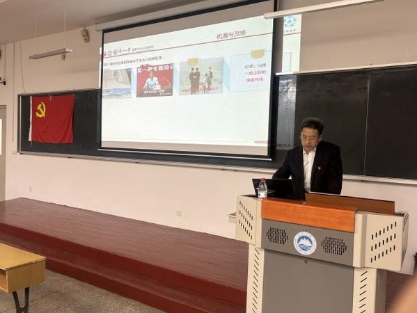 艾国生以可可托海为主线,从“可可托海的东大缘”到“可可托海精神与东大魂”,向同学们分享可可托海的东大人的典型事迹,讲述了中国共产党的发展历程。他表示,希望同学们肩负历史使命,继承发扬“可可托海的东大人”精神,坚持不懈用党的创新理论武装头脑,坚定不移听党话、跟党走,立志做有理想、敢担当、能吃苦、肯奋斗的新时代好青年。