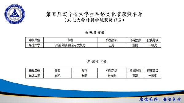 近日,由中共辽宁省委教育工委、辽宁省教育厅举办的第五届辽宁省大学生网络文化节和全省高校网络教育优秀作品推选展示活动结果公布。由乐动体育app 团委申报,由董磊指导孙翌、刘骏、田淙元、尤凯司完成的短视频作品《五月》和郑凯完成的新媒体作品《向未来》获得一等奖。