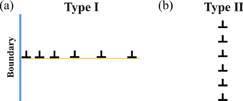 图1 GND 配置类型:(a)产生长程内应力的 I 型;(b)导致取向差的 II 型。