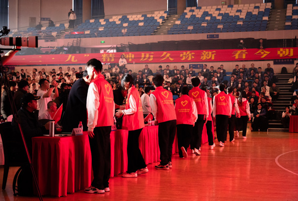 在纪念“一二•九”运动89周年师生歌会现场,志愿者们秉持着高度的责任感和使命感,以饱满的热情、专业的态度和敬业的精神,早早到岗,为会场的师生提供服务。在入口处,志愿者热情地引导师生进场,维持会场秩序,提供咨询服务;舞台两侧,志愿者随时准备为上台表演的老师和同学们提供后勤保障;台下,志愿者承担起摄影摄像的任务,用镜头记录下师生歌会的精彩瞬间。