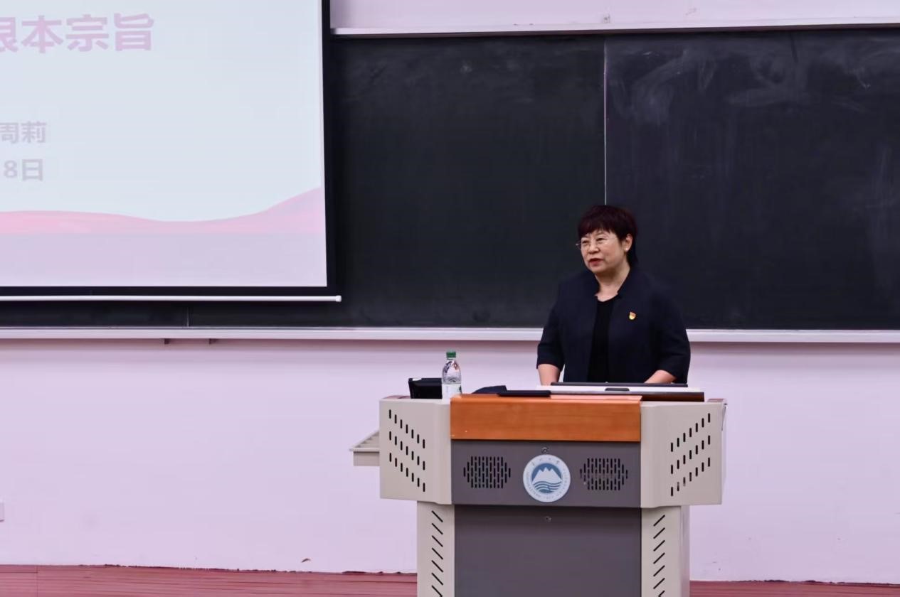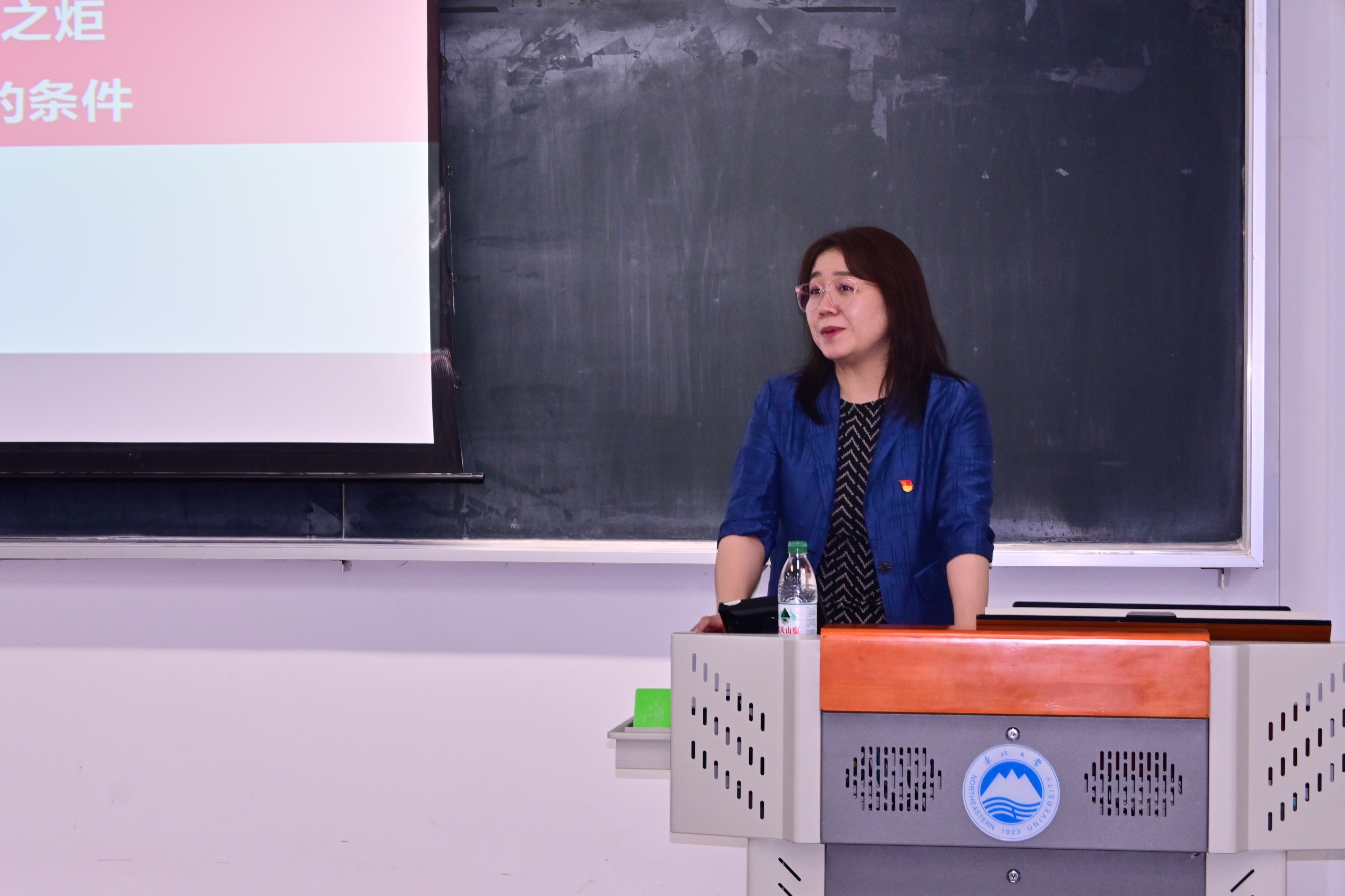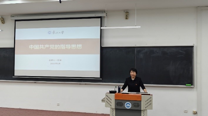 5月9日中午,东北大学体育部党委书记任丽系统解读党的指导思想,从马克思主义中国化的历史脉络出发,结合重大历史事件,阐释理论与实践的交融,号召学员以党的指导思想为行动指南,提升政治素养。