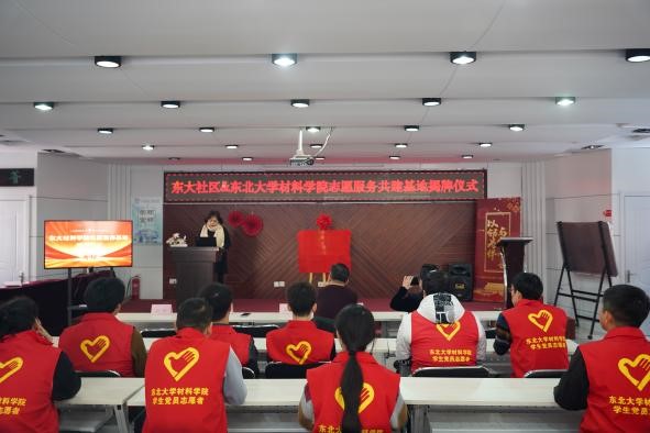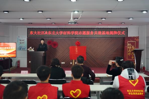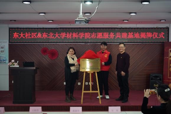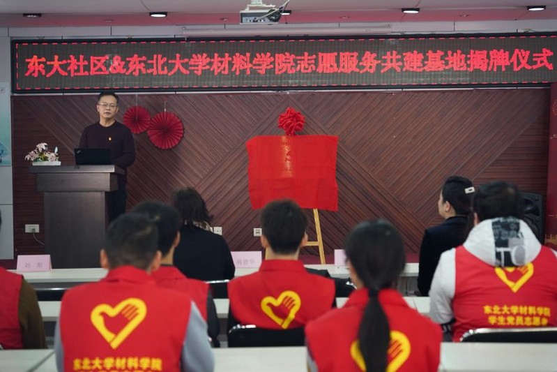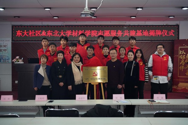 接着,贺翔代表东北大学乐动体育app 向东大社区对乐动体育app 志愿服务的大力支持表示感谢,并指出志愿服务是现代社会文明进步的重要标志,也是培养公民特别是当代青年学生责任感的有效途径,更是东大材料人的坚守。长期以来,东北大学乐动体育app 践行“自强不息,知行合一”的校训精神,将志愿服务作为实践育人的关键一环,此次志愿服务基地揭牌,是在过去一年双方合作的沉淀下推动合作更进一步的升华。贺翔鼓励春晖的队员们要再接再厉,做志愿服务切忌空谈,要切实结合社区需求落实到行动上,要坚持将志愿服务做在日常,化作经常,互相支撑、互相关爱。希望双方的合作能够推动志愿服务常态化、项目化、品牌化,东大社区和东北大学乐动体育app 的情谊能够历久弥新,在互相合作、互相关爱下结出璀璨的志愿服务之花。最后,蒋德华、贺翔与学生共同为“春晖”党员志愿者服务基地揭牌,全体与会人员合影留念。