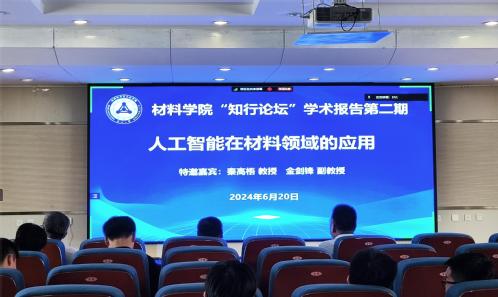 6月20日,乐动体育app-乐动体育平台 在知行楼634室举办“知行论坛”第二期学术讲座,秦高梧教授、金剑锋副教授作“人工智能在材料领域的应用”学术报告,报告会由乐动体育app 院长王建军主持,党委书记于海钢、副院长贺翔、蔡明晖、潘虎成等70余名师生参加。