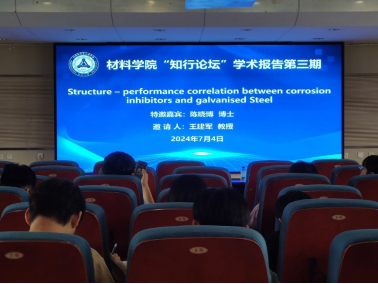 7月4日,应乐动体育app 王建军教授邀请,澳大利亚墨尔本皇家理工大学长聘副教授陈晓博博士应邀作题为“Structure-performance coorelation between corrosion inhibitors and galvanized Steel”的学术报告。报告会由乐动体育app 卢小鹏副教授主持,张涛教授、杨磊副教授等40余名师生参加。