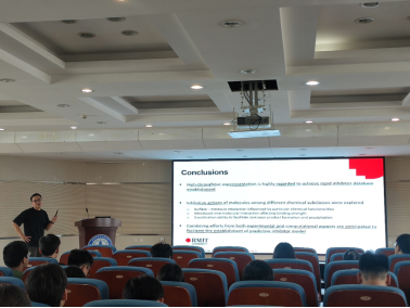 陈晓博介绍了墨尔本皇家理工大学的基本概况及所在研究室的基础实验条件,包括高通量实验平台、计算平台等。并基于金属材料,特别是钢铁材料在应用过程中面对的复杂的服役环境,指出了缓蚀剂在保障材料服役过程中性能稳定性的重要作用。详细介绍了镀锌钢板用缓蚀剂结构与其防护性能间的内在关系以及不同结构缓蚀剂协同作用机制,并提出了基于分子结构的缓蚀剂快速筛选的研究方向。