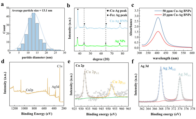 在本研究中,作者采用PVP-PVA作为保护剂,通过化学还原法高效合成Cu-Ag BNP水溶胶,有效解决纳米颗粒团聚和双金属混相的难题。所合成的金属纳米颗粒具有均匀的粒径分布,粒径范围10-15 nm,平均粒径尺寸13.1 nm。Cu-Ag BNP杀菌剂不仅展现了高效的杀菌功能(固着SRB细胞杀菌率约99.999%),而且具有优异的缓蚀性能(X80钢缓蚀率超90%)。该Cu-Ag BNP杀菌剂不仅解决了纳米金属颗粒易团聚问题,而且展现了优异的杀菌和缓蚀双功能性,为油气储运等行业中的微生物腐蚀控制提供可持续的解决方案,具备广泛的工业化应用前景。